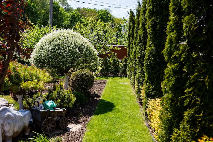 The spacing depends on the specific type of tree. For example, to create a dense screen, American Pillar Arborvitae trees are often planted 2-3 feet apart. We'll determine the precise spacing needed to create a full and uniform screen for your property.